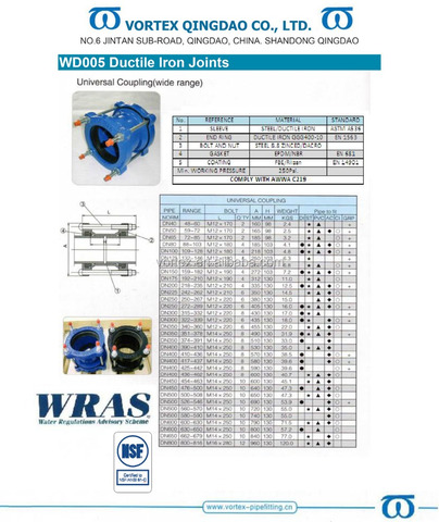 DCI حديد الدكتايل اقتران عالمي (مجموعة واسعة) ل دي أنبوب كلوريد متعدد الفاينيل